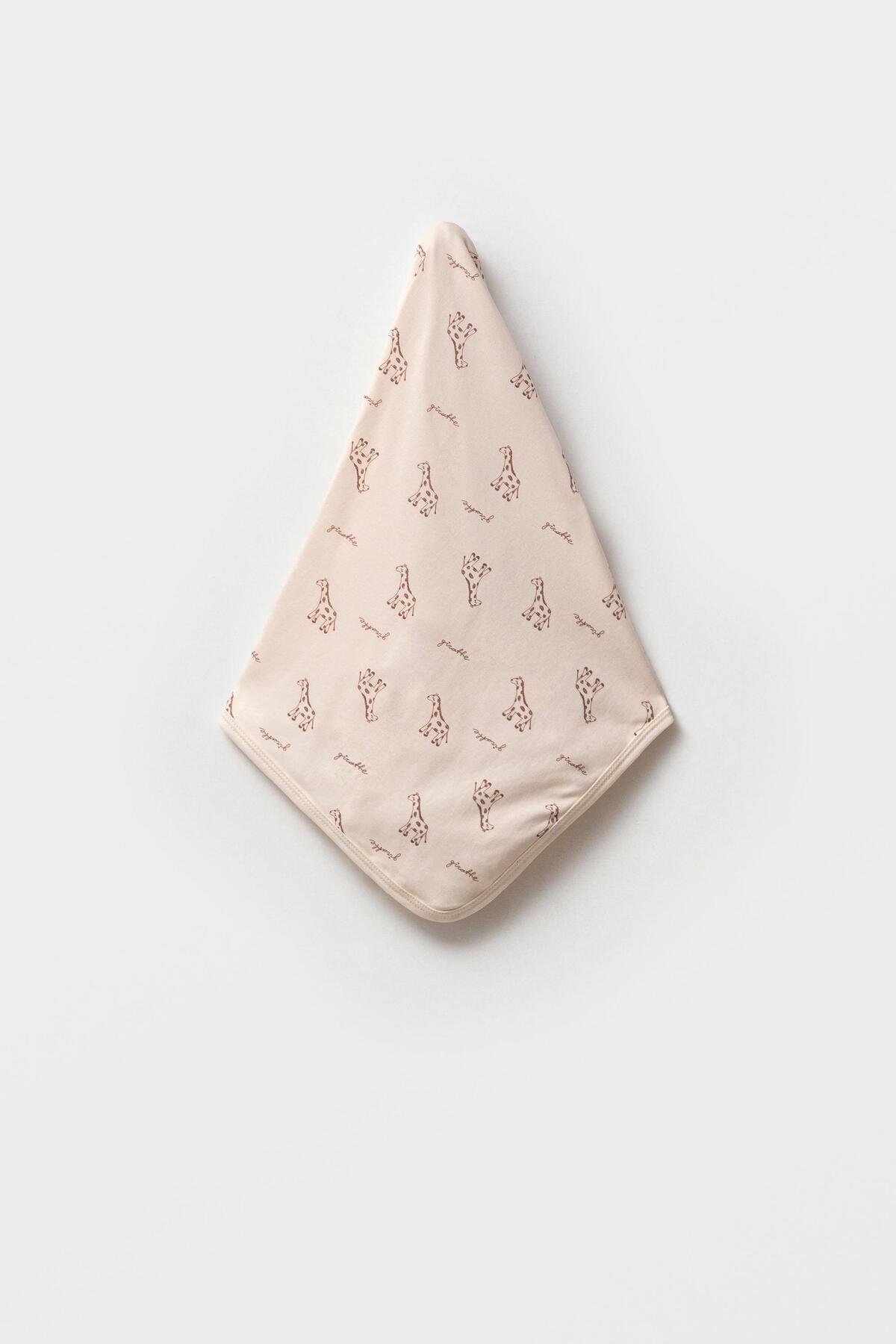 %100 ORGANİK PAMUK ZÜRAFA BASKI ÇİFT KATLI BEBEK BATTANİYESİ (6030)